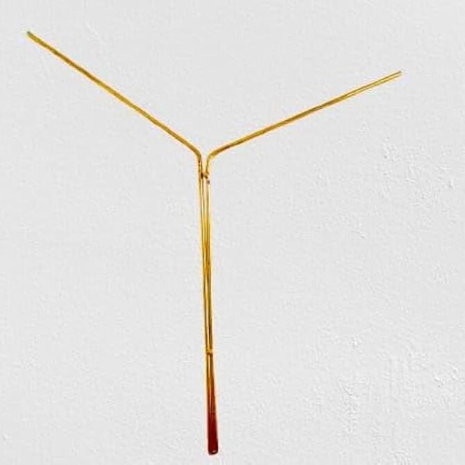 Traditionally made from branches of hazel or willow, Y-rods were used to locate underground water or minerals. The dowser holds each arm of the "Y" and walk slowly until the tip dipped downward in response to energetic fields.